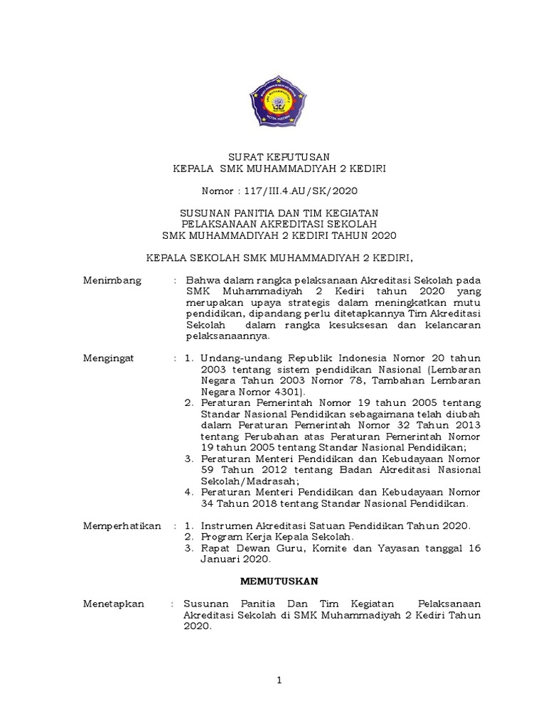 Sk Tim Akreditasi 2020 Doc : Sk Panitia Akreditasi Sekolah / Sk tim persiapan akreditasi sekolah 2018.doc, unduh.. Struktur kepanitiaan pelaksanaan akreditasi sdn selajambe 1 tahun 2018. More documents from pong bent sk tim akreditasi rs april 2020 19. Selain itu sekolah perlu membuat lampiran susunan panitia kegiatan pelaksanaan akreditasi sekolah. Demikian sk (surat keputusan) tim persiapan akreditasi sekolah tahun 2018 yang dapat saya bagikan, semoga bermanfaat. Sk panitia akreditasi keputusan kepala smk yapema gadingrejo.